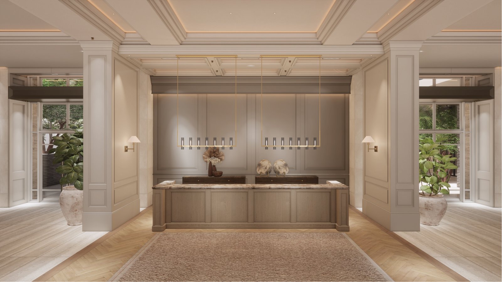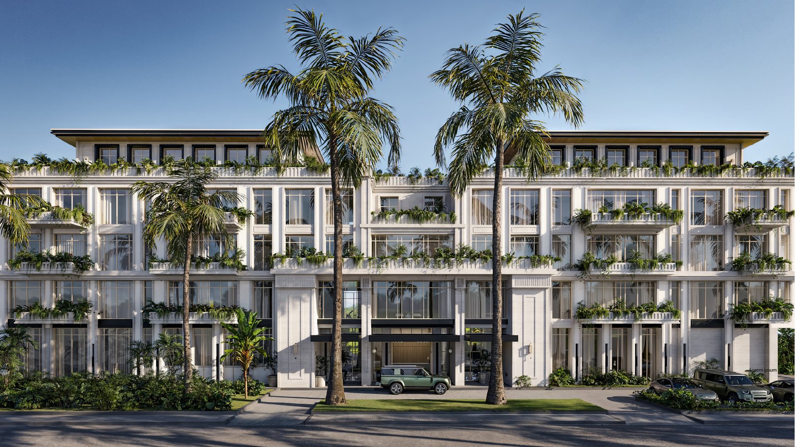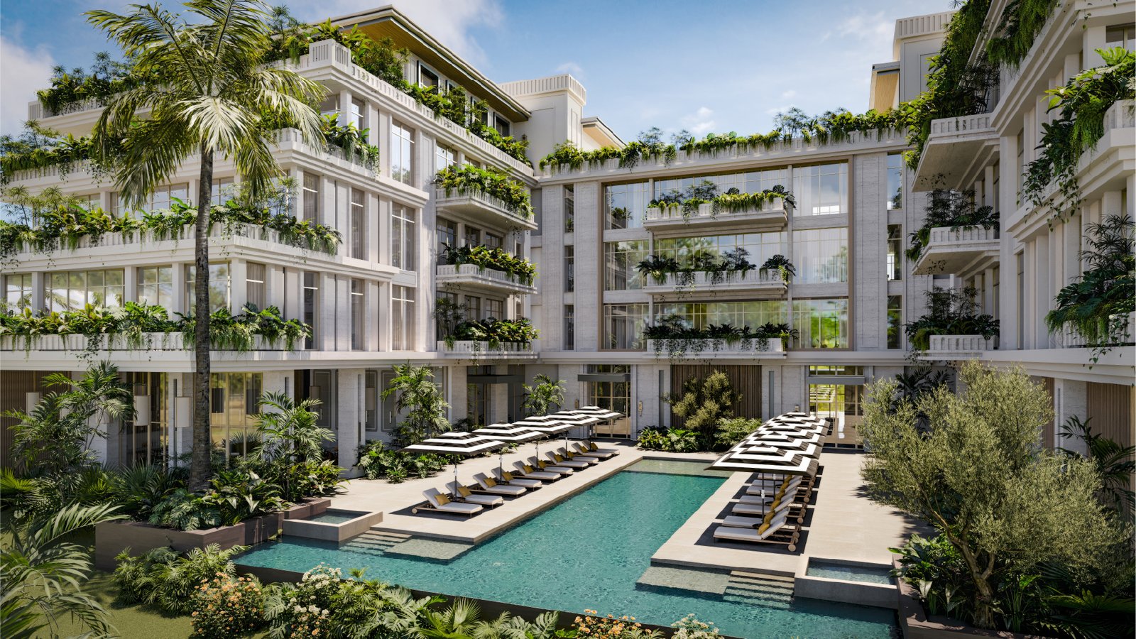 The architectural design is based on the contemporary neoclassical style, blending naturally with its tropical surroundings through lush landscaping and natural materials. The five-story building features generous terraces and floor-to-ceiling windows that enhance light and connect indoor and outdoor spaces. Every detail is designed for comfort, elegance, and exclusivity, elevating the living experience in Cap Cana.