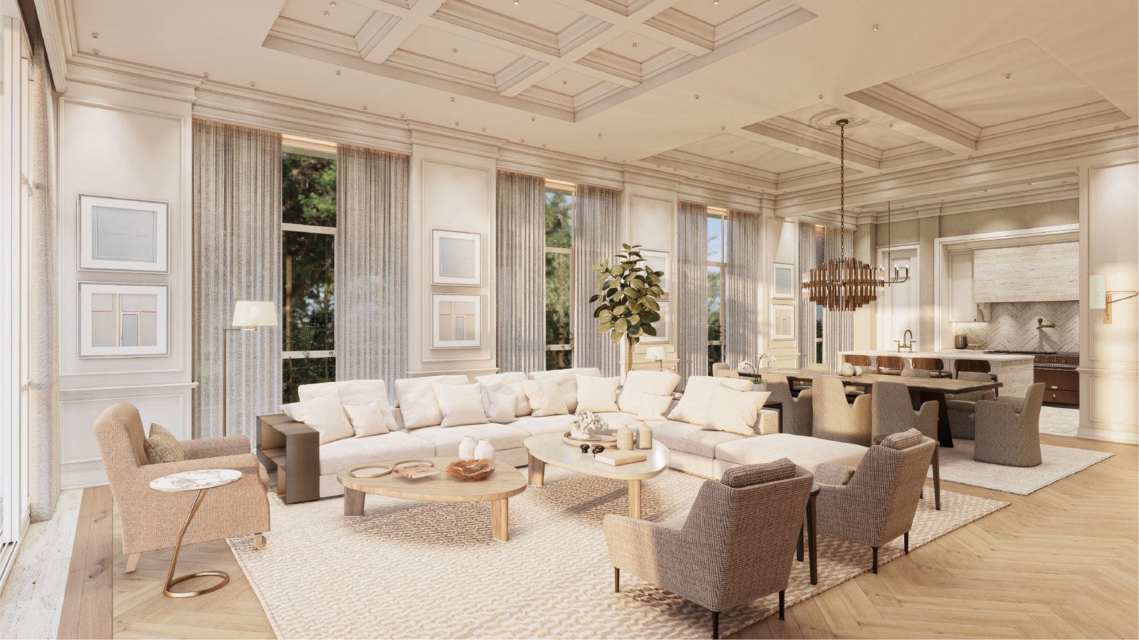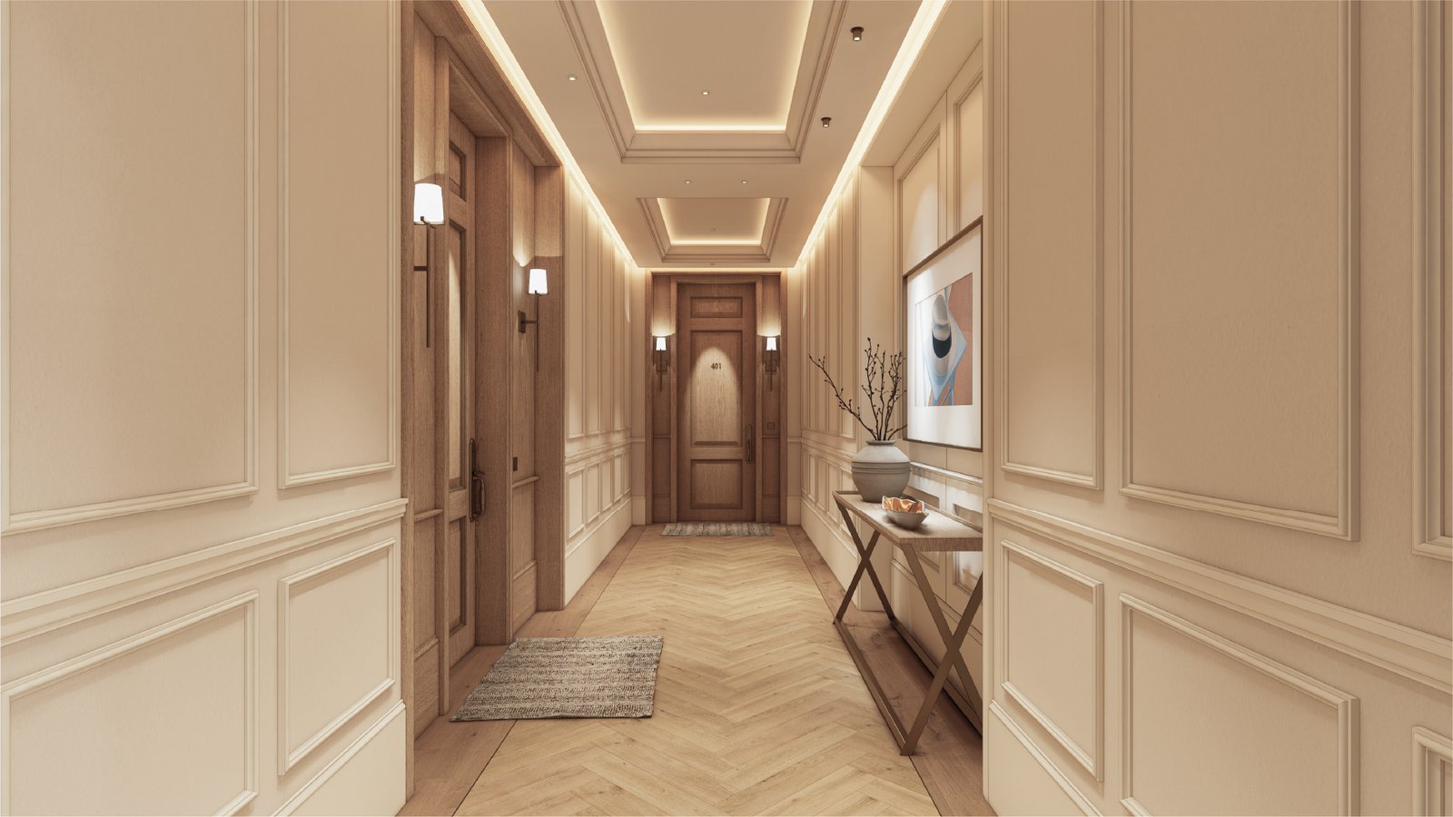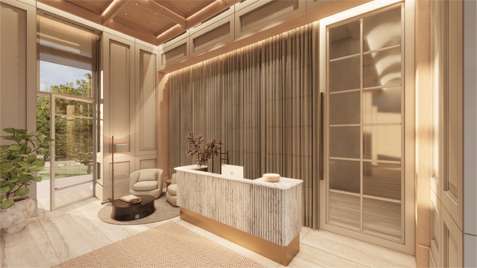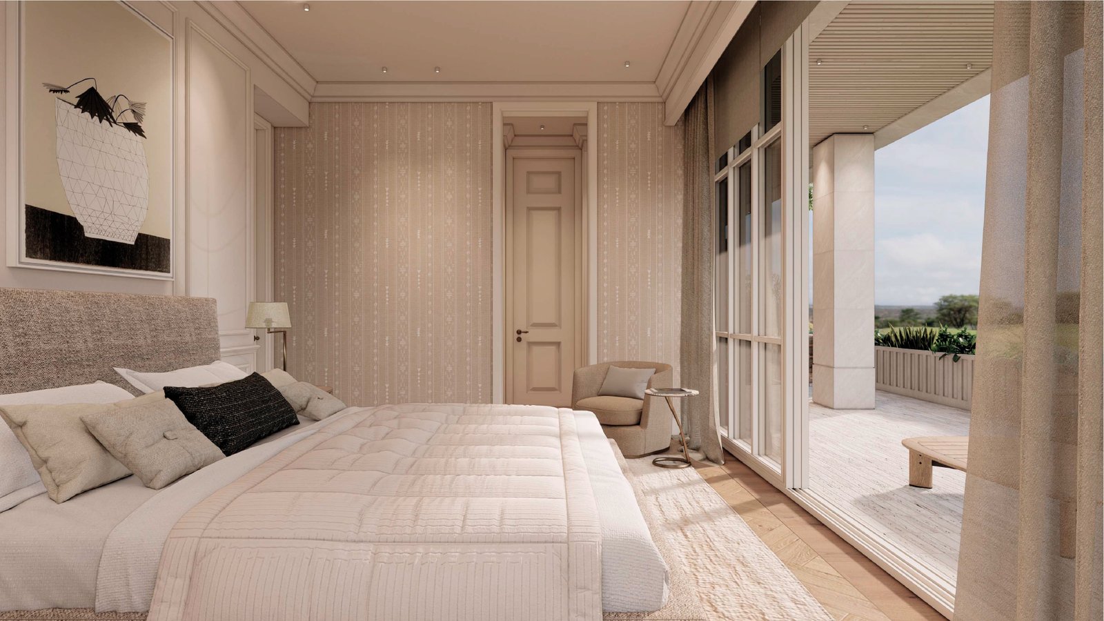 The architectural design is based on the contemporary neoclassical style, blending naturally with its tropical surroundings through lush landscaping and natural materials. The five-story building features generous terraces and floor-to-ceiling windows that enhance light and connect indoor and outdoor spaces. Every detail is designed for comfort, elegance, and exclusivity, elevating the living experience in Cap Cana.
