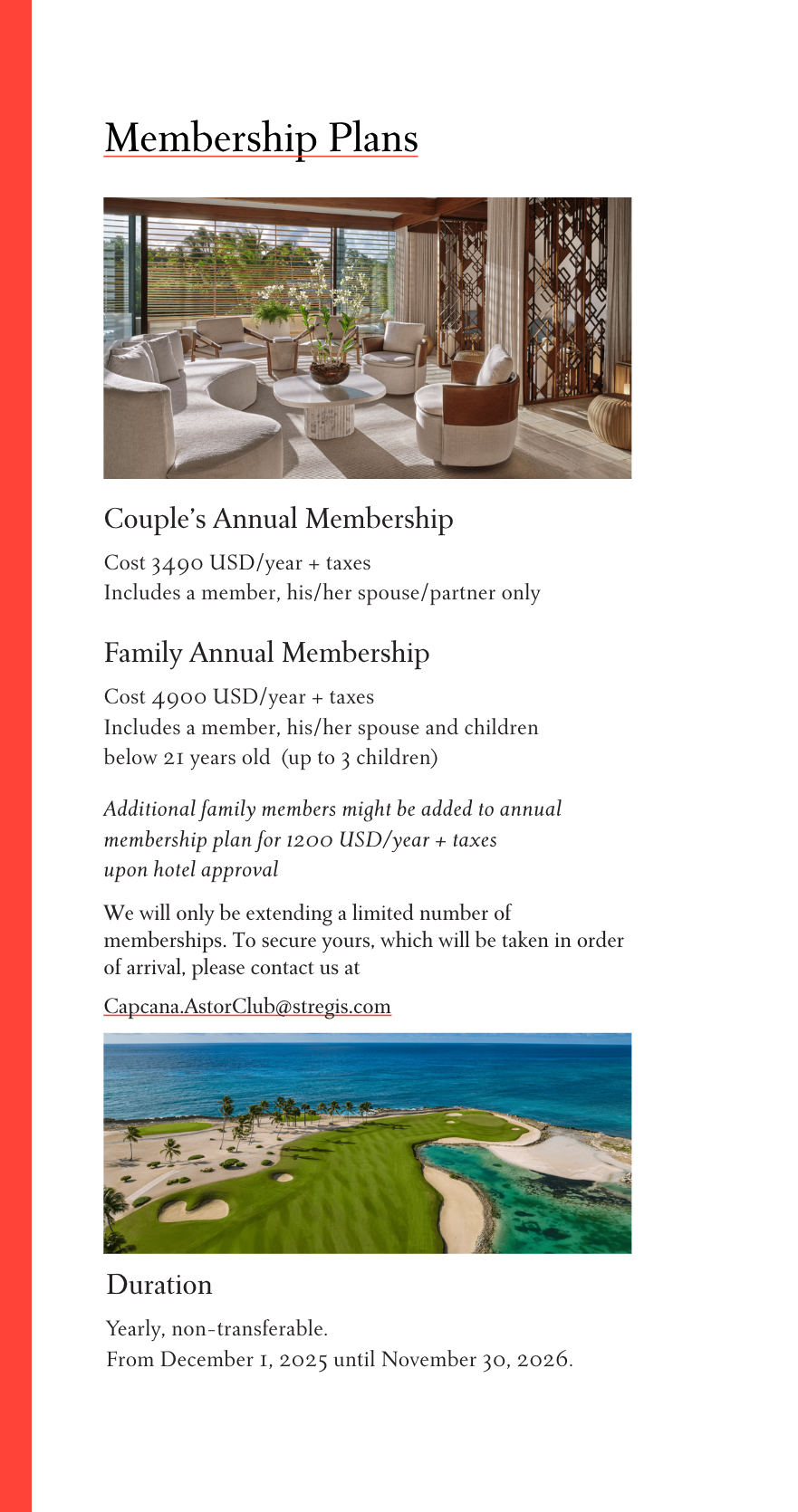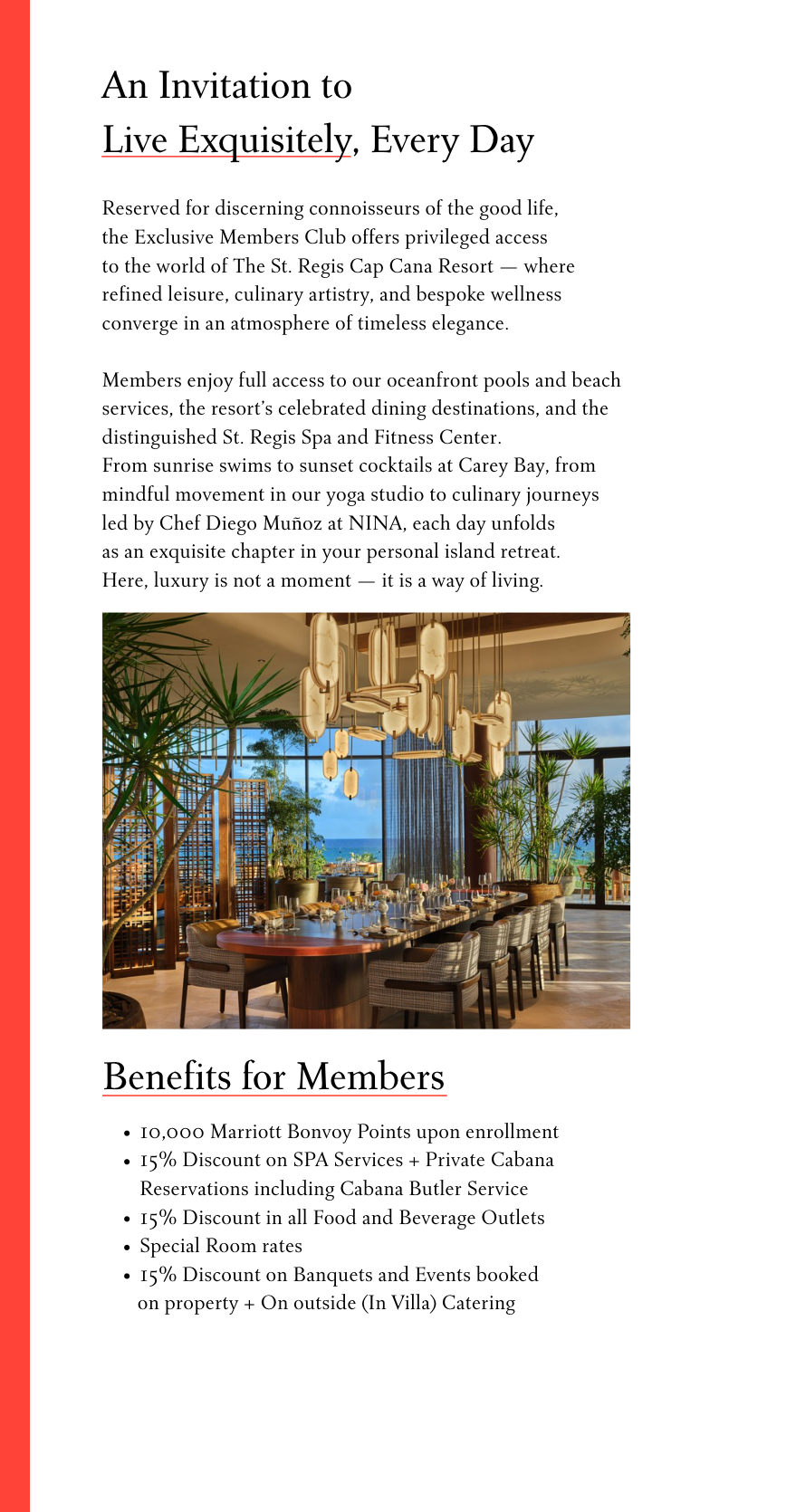 In Partnership with The St Regis Cap Cana Resort, Our Owners get complimentary the 1st year of their exclusive member club